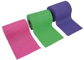 O rolo de banda elástica tem 22,9 metros de comprimento e 15 cm de largura, podendo-se cortar para uma posterior adaptação a outro tipo de trabalho a realizar. Este rolo encontra-se disponivel em três intensidades, sendo que cada uma delas tem uma cor diferente.